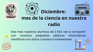Es el mes de la ciencia en nuestra radio. Nuestros alumnos de 2ºESO nos ofrecen sus conocimientos científicos en forma de pequeñas píldoras científicas. Puedes disfrutar de todo lo que ofrece nuestra radio a través del canal de YouTube IES VALLE DE LACIANA o en el blog creado para la difusión de toda la información de la radio en este enlace: